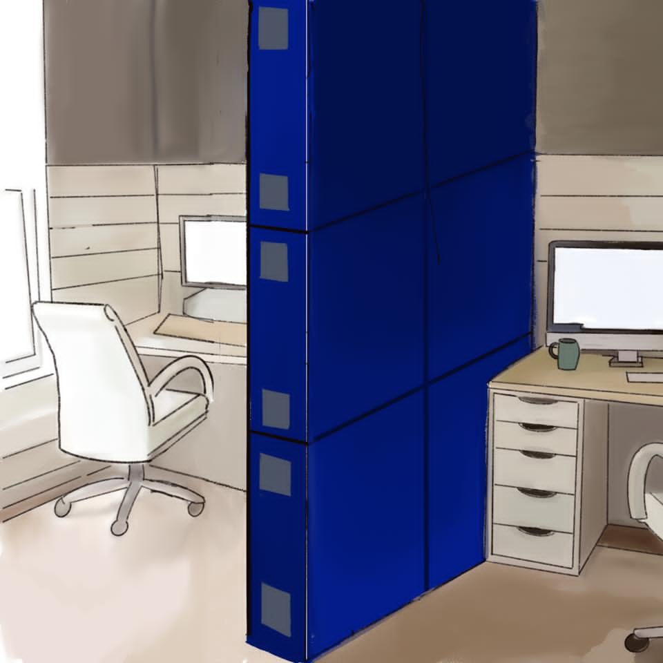 Dulo es un muro modular que optimiza el espacio de trabajo aislando al usuario de ruidos y otros distractores que puedan intervenir con la concetración permitiéndole mantener un ritmo de trabajo adecuado para realizar sus actividades académicas y sin interrupciones.